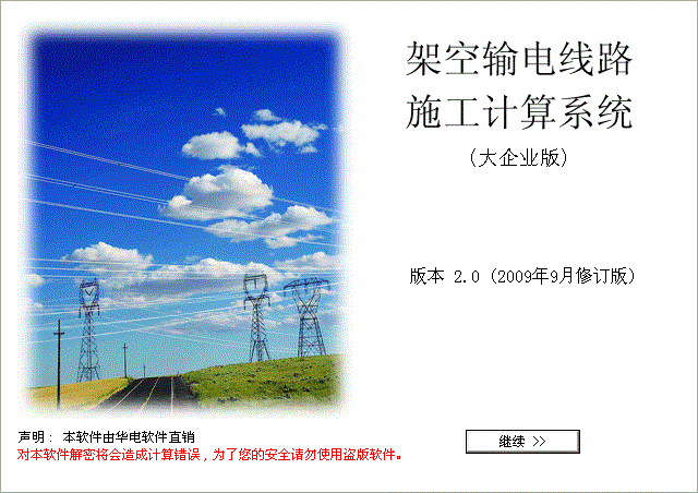 | 《架空输电线路施工计算系统》的最新版本为“2009年9月修订版”,软件入口为图