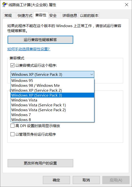 三、在弹出窗口,选“兼容性”,勾选“以兼容模式运行这个程序”,在下面的下拉列表中选择“Windows XP(Service Pack 3)”,最后点击“确定”,即可开始正式计算。